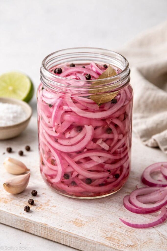 ince doğranmış soğan, sirke ve suyla kısa sürede kurulur; bekledikçe keskinliği azalır, sofraya hafif bir eşlikçi olur.